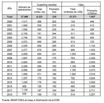 Con la información del año 2018 se completa un lapso de 19 años para la serie Precio de la tierra de la DIEA, se precisó. Durante él, se registraron 37.980 operaciones por un total de 8.323 miles de hectáreas.