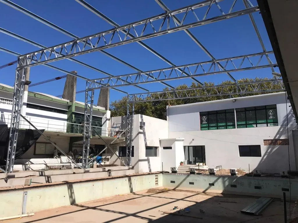 Piscina climatizada durante el proceso de techado