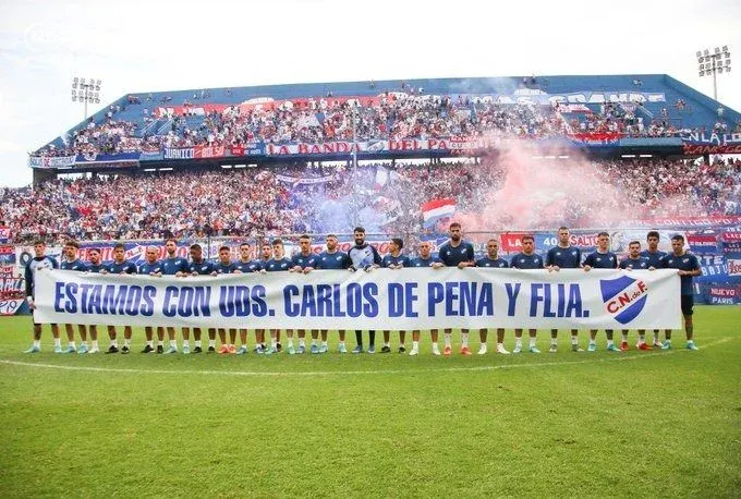 Los futbolistas salieron a la cancha con un mensaje para Carlos De Pena y su familia, exjugador de Nacional que se encuentra en Ucrania, intentando escaparse de la guerra.