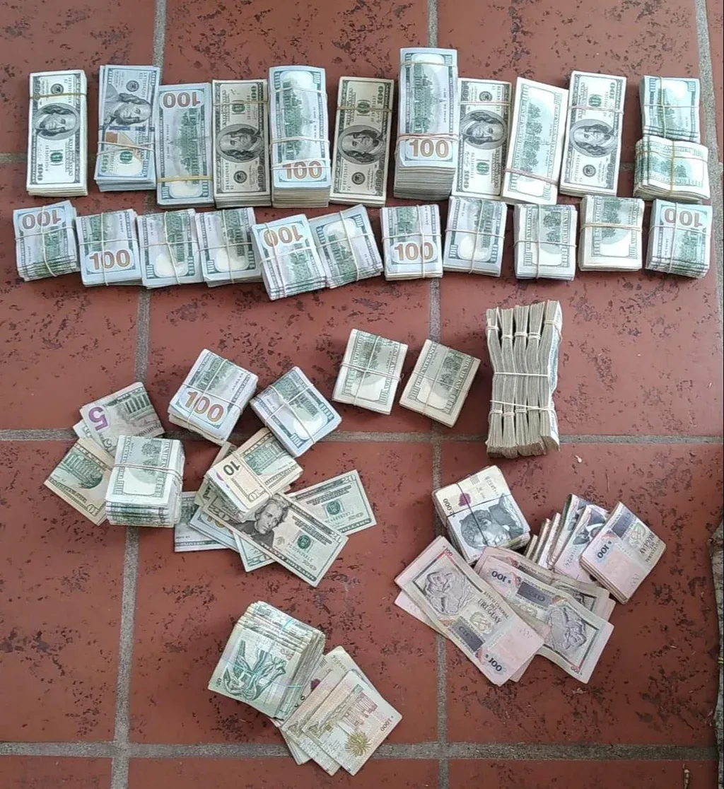 Además del dinero y las armas, la policía incautó una camioneta marca Jeep del 2022, y una moto Honda Falcon 400. El caso es investigado por la fiscalía.