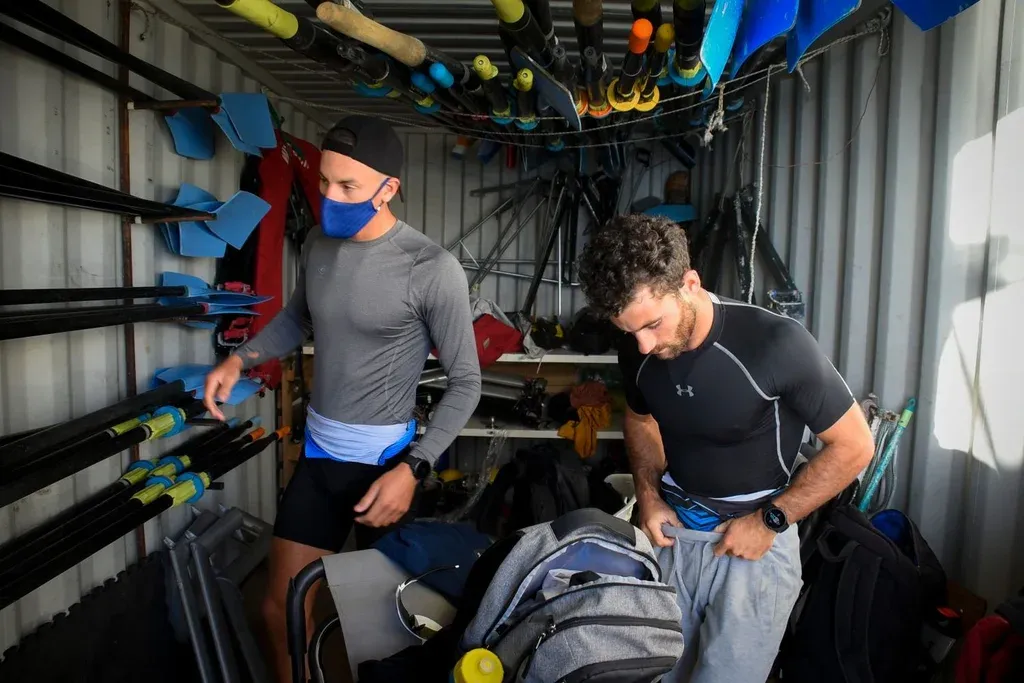 La cuarentena fue para Bruno y Felipe la mejor preparación que podían tener. Montevideo Rowing les dio remorgómetros y pesas. Cada uno entrenó como si estuvieran en el lago, aunque pasaron semanas entre cuatro paredes. A través de videollamadas compartían entrenamientos.