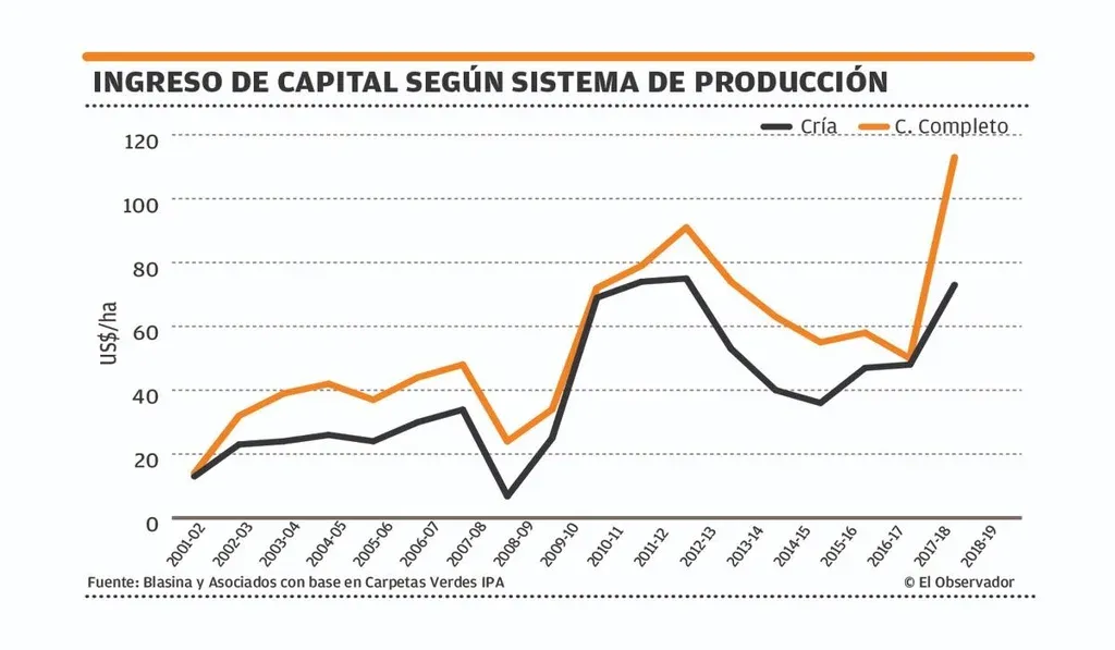 Las empresas de ciclo completo del norte, litoral norte y centro norte más que duplicaron su ingreso de capital al pasar de US$/ha 53 en 2017/18 a US$/ha 122.