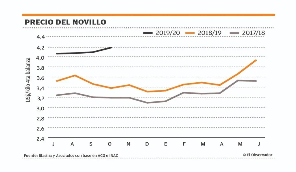 El precio del ganado y del dólar en lo que va del ejercicio 2019/20 siguen en aumento y son mayores si se los compara con el ejercicio 2018/19.