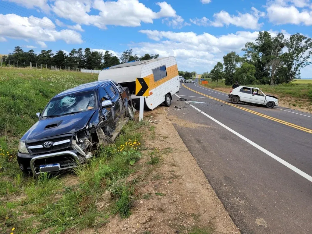 "Por motivos a determinar, impacta con una camioneta Toyota Hilux que circula en sentido contrario", afirmó Caminera y agregó que la camioneta remolcaba una casa rodante. Iba con dos ocupantes: el conductor, que salió ileso, y una acompañante, que tuvo lesiones leves.
