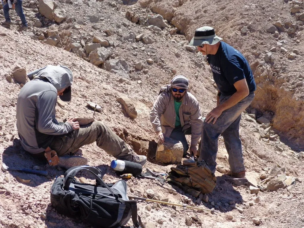 Los paleontólogos trabajando sobre los fósiles encontrados.