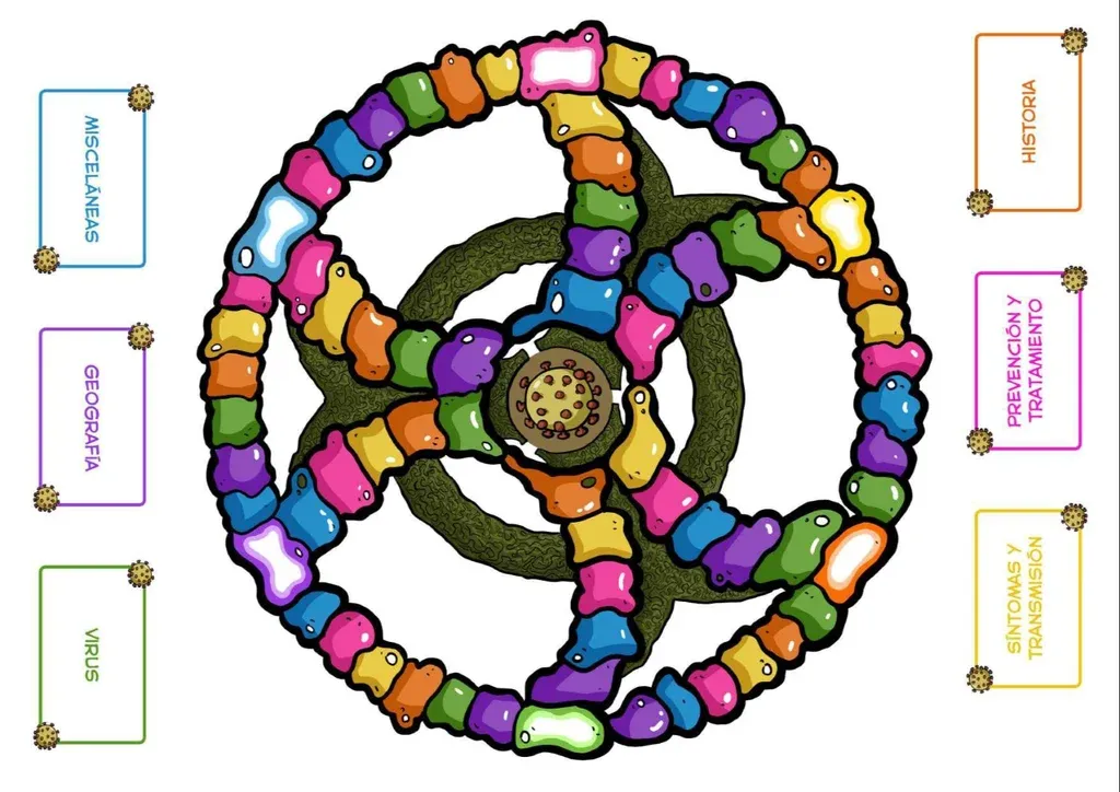De los creadores de ComicBacterias, nace COVID-ANJI, inspirado en la película JUMANJI. El objetivo del juego. Que también se puede jugar en línea, es vencer la enfermedad COVID-19 moviendo el personaje por el tablero en función del resultado de los dados para llegar al centro y gritar “¡COVID-ANJI!”.