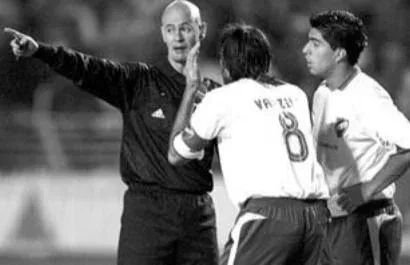 La protesta de Vanzini y Suárez al árbitro en el partido contra Inter de 2006