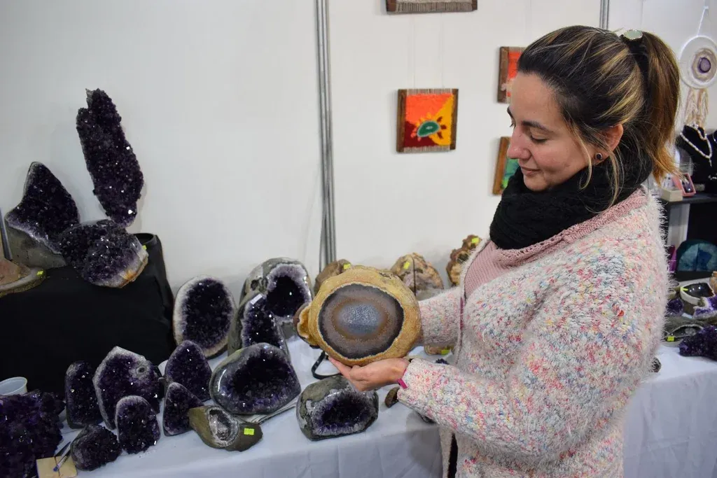 En el Paseo de Compras la Asociación de Mineros de Artigas participa por segunda vez en una Expo Prado, tras su experiencia inicial de 2017. Los expositores son cuatro productores que exhiben piedras preciosas y semipreciosas, en bruto o con diverso nivel de valor agregado. Los precios van de $ 150 a US$ 1.000. La más cara es un ágata que se estima tiene 14 millones de años, con la particularidad de contener en su interior agua que quedó “atrapada” en la formación que se produjo en aquel período, explicó Andrea Montes de Oca.