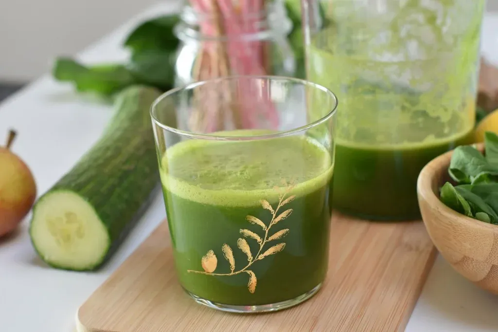 El jugo verde naturalmente tiene el agua de sus ingredientes (verduras, frutas y superalimentos) si lo hacés en juguera, y si lo hacés en licuadora además agregarás a la receta unos 200 mililitros más de agua, que como ves viene extra bien.