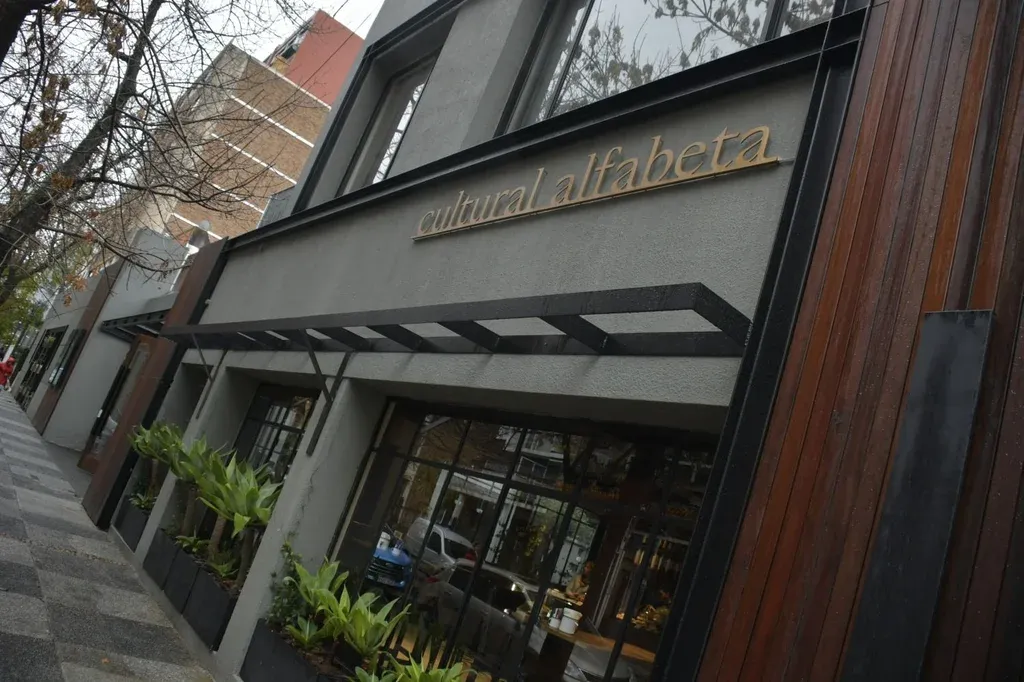 La transformación del espacio estuvo a cargo del arquitecto Alexis Anderson e Inés San Martín tuvo en sus manos el diseño del interiorismo, ambos se enfrentaron al desafío de reapropiarse de un lugar con historia. El resultado es un edificio con una energía circular, en el que no hay divisiones entre la cafetería, el cine o la librería, con un patio en el centro y un olivo de más de 20 años como punto gravitatorio. Desde cualquier espacio se puede ver la influencia de las otras áreas y esa dinámica de transparencias que permite la estructura está vinculada con el concepto central de Cultural Alfabeta: todo funciona como una unidad. “Somos un colectivo que trabaja junto. Si bien cada uno sabe de algo específico también participamos en la opinión estratégica y de diferentes cosas en el todo. Eso también se ve en su arquitectura”, indica Álvaro Planzo, responsable del café de especialidad.