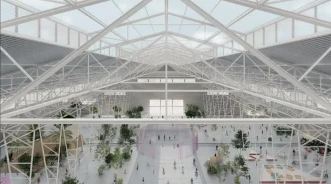 Render de cómo quedaría el interior de la nave central del Mercado Modelo