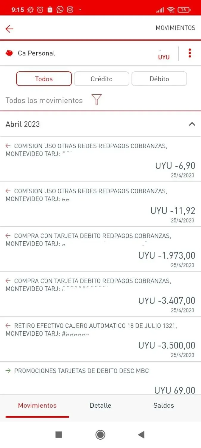A un cliente le aparecen como retirados $ 3.500 de un cajero Banred y luego le aparecen dos pagos en RedPagos de $ 3.400 y casi $ 2.000. Ninguno de esos movimientos fue realizado por la usuaria.