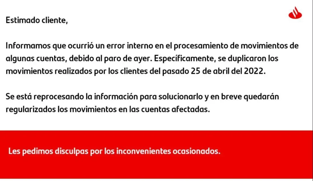 Desde el banco informaron que ocurrió "un error interno en el procesamiento de movimientos de algunas cuentas, debido al paro de ayer".