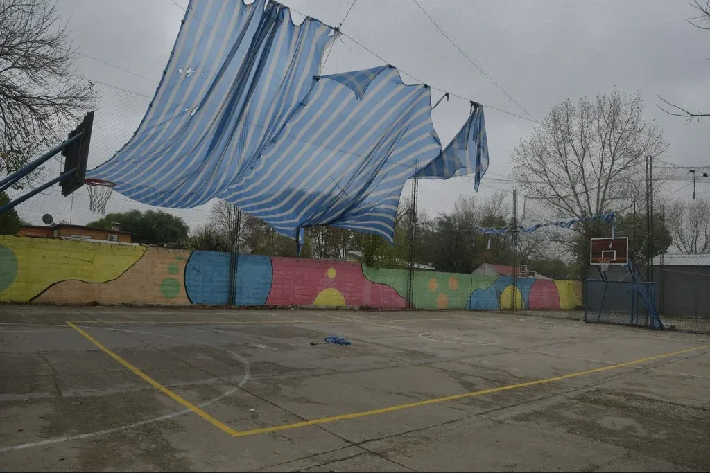 A una cuadra del CAIF Santa María, en Marconi, se encuentra la Escuela de Oficios del Movimiento Tacurú, que atiende a adolescentes y sus familias. Los salones, en desuso desde hace varios días, están cerrados con llave. En el que debería ser el comedor, las mesas fueron levantadas.