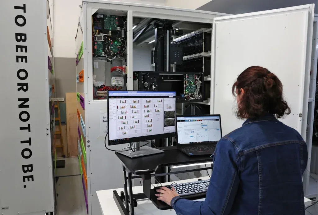 "Gracias a la inteligencia artificial, nuestro programa sabe qué necesitan las abejas", dice en el taller donde se ensamblan estas grandes colmenas metálicas.