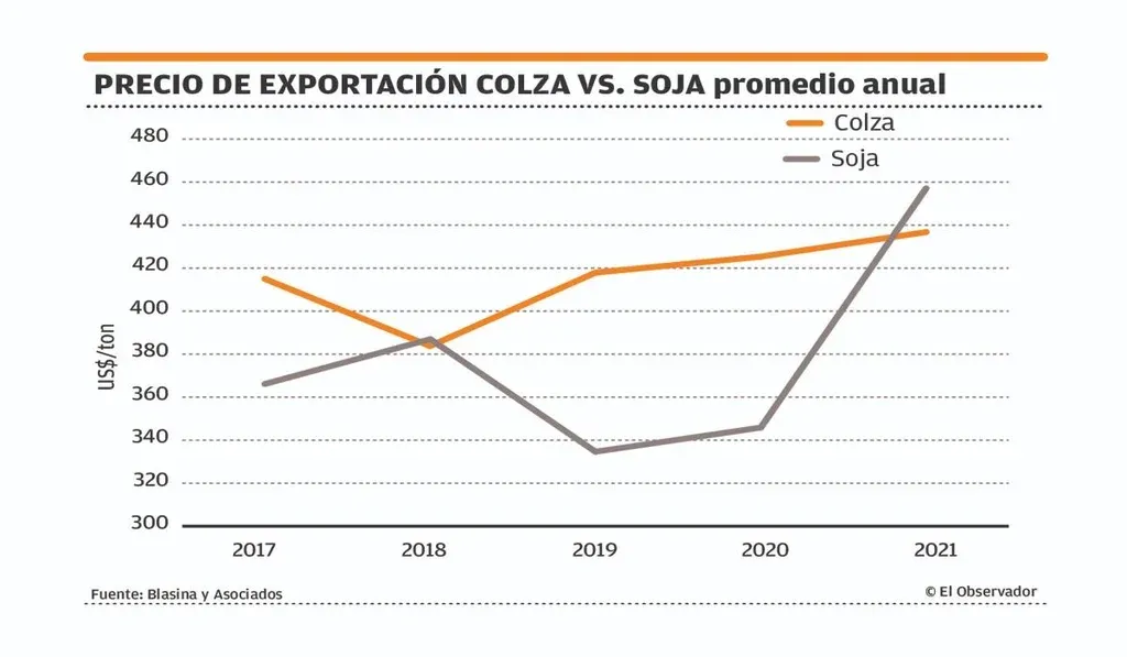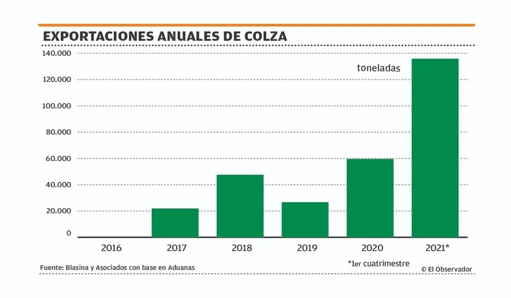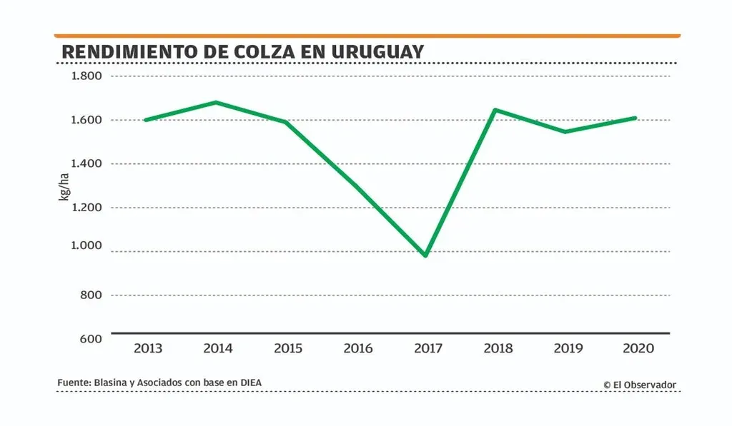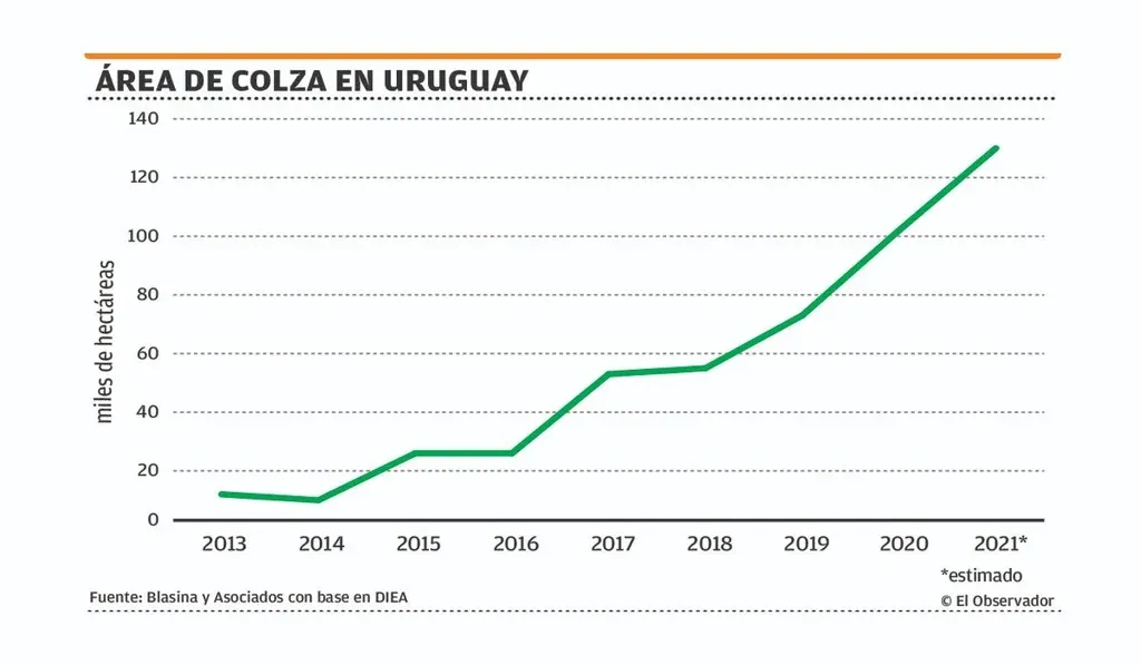El desarrollo de las brassicas en Uruguay fue impulsado por Alcoholes del Uruguay (ALUR), con la lógica de complementar la producción de aceite a partir de las cosechas de verano.