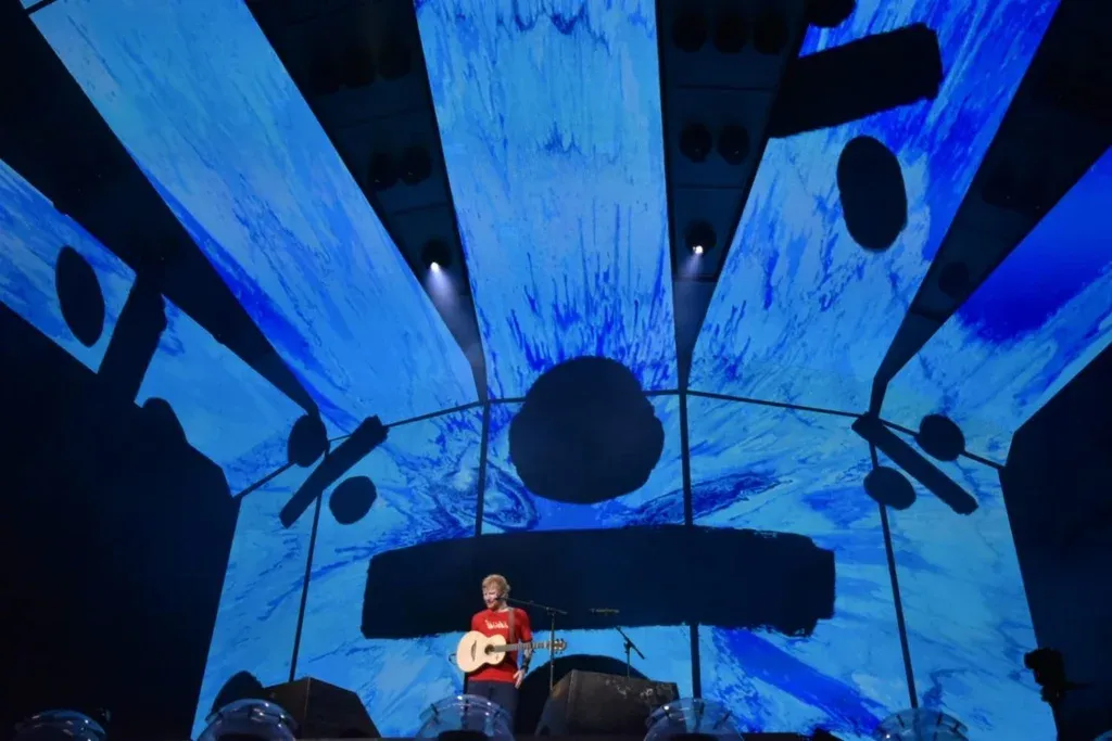 Para el inicio, la primera composición que ejecutó sobre el escenario fue Castle on the hill, uno de los hits que tuvo con su tercer y último disco, ÷ (Divide). En todos sus últimos conciertos ha sido el tema de arraque, y ha seguido con Eraser, que abre ese mismo álbum.