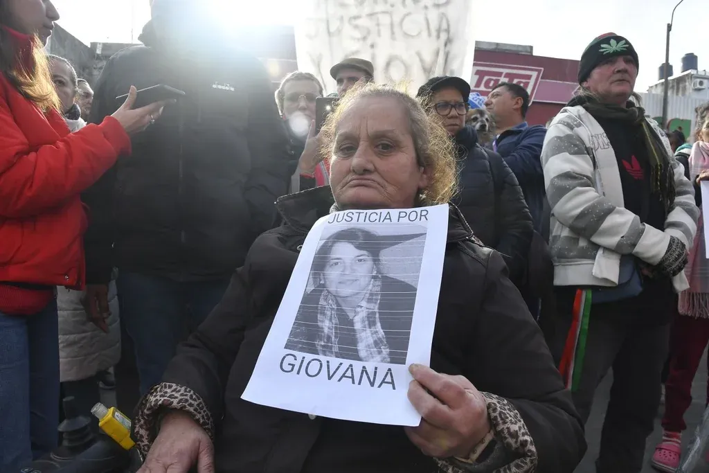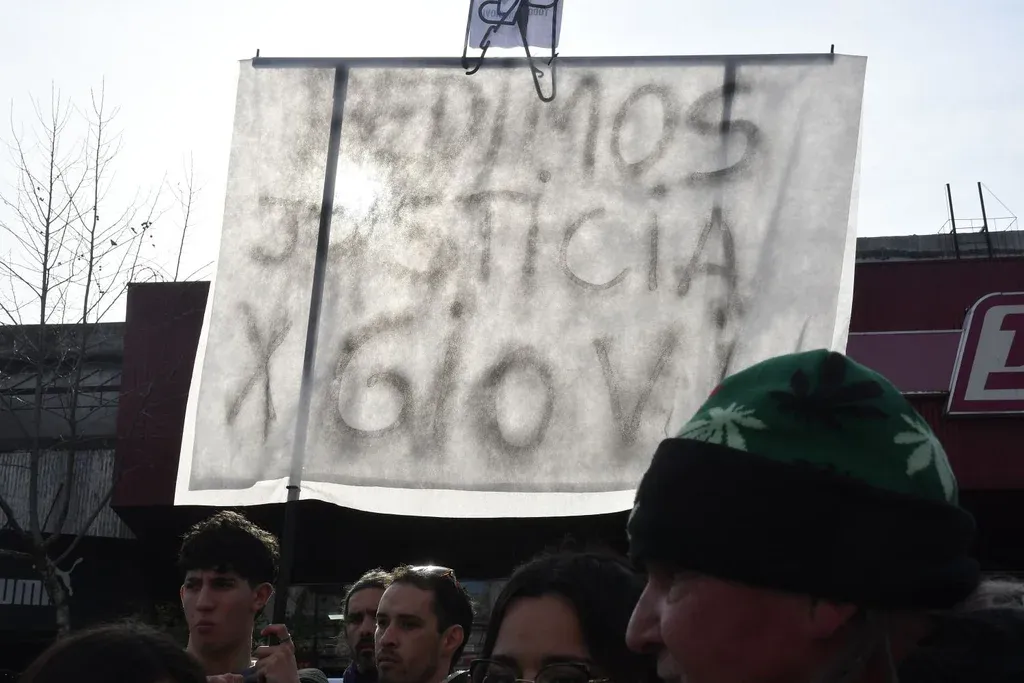 Foto: Leonardo Carreño. En la manifestación las personas levantaron pancartas y bandera que pedían "Justicia por Giovi". "Justicia por la compañera, la mataron laburando", dijo una manifestante según un video que publicó Telemundo.