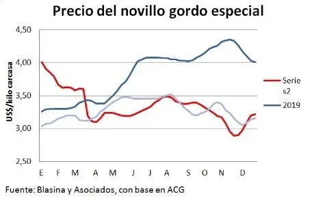 Los mejores novillos gordos cotizan entre US$ 3,20 y US$ 3,25 por kilo en cuarta balanza, sin ser la categoría más demandada por la industria. Se han concretado negocios por encima de esos valores, pero son casos muy excepcionales. Por otro lado, las entradas a planta rondan los diez días.