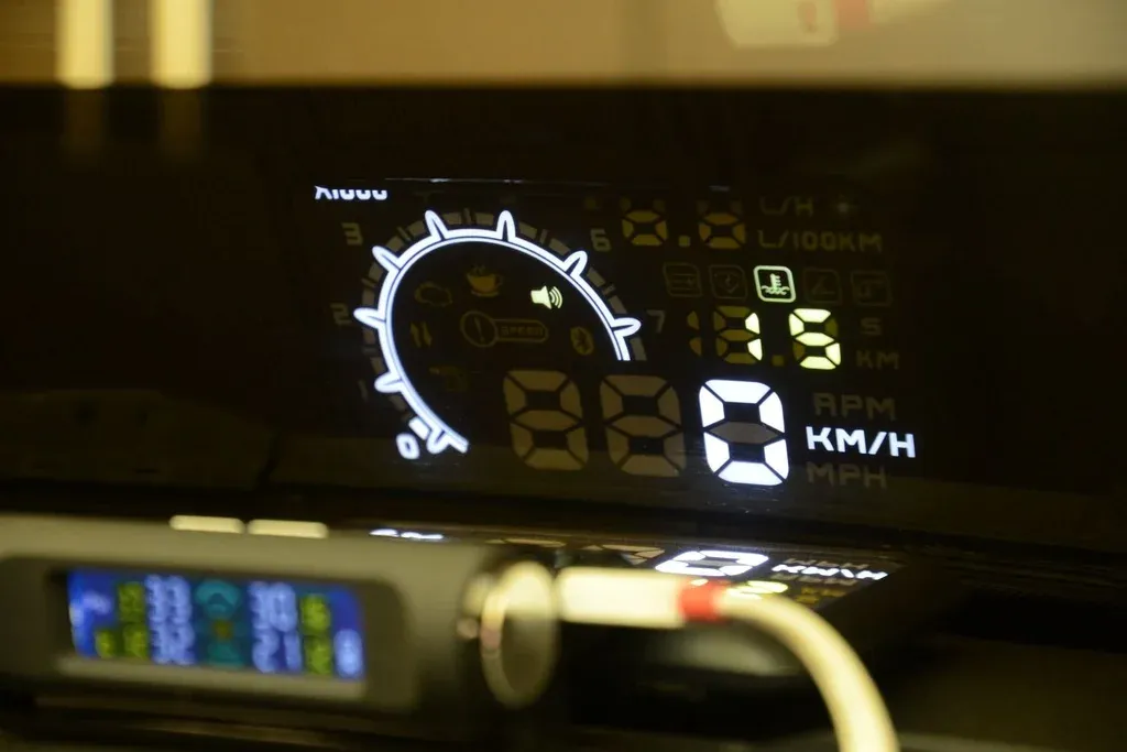 En el parabrisas del Renault Megane hay un monitor holográfico, un tipo de pantalla que utiliza difracción de luz para crear una imagen en el vidrio del vehículo. “Es un aparato para autos chinos, pero yo lo modifiqué”, cuenta. Allí ve las revoluciones, la velocidad, la temperatura del aceite y la cantidad de kilómetros que le quedan de combustible. Todo es configurable con un botón. También tiene funciones auditivas: cuando llega a los 60 y 120 kilómetros le avisa con un sonido que superó esas velocidades.