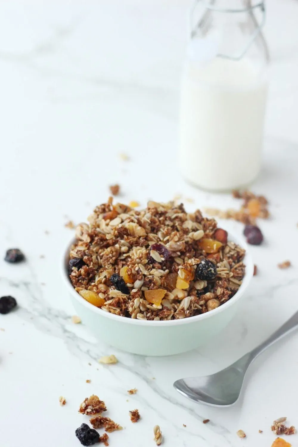 ¡Con esta super granola inauguramos un nuevo ciclo de recetas junto a Luciana Lasus! Ella es nutricionista y yo cocinera. A ella le apasiona la cocina y a mi la nutrición, ¡mejor combo imposible! Juntas quisimos unir fuerzas para traer recetas ricas, variadas y nutritivas, recetas que pueden simplificar el “comer sano” pero que también están adaptadas a la vida de una familia.