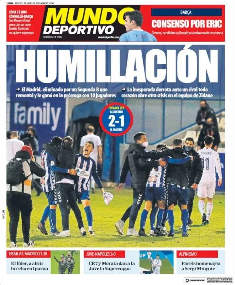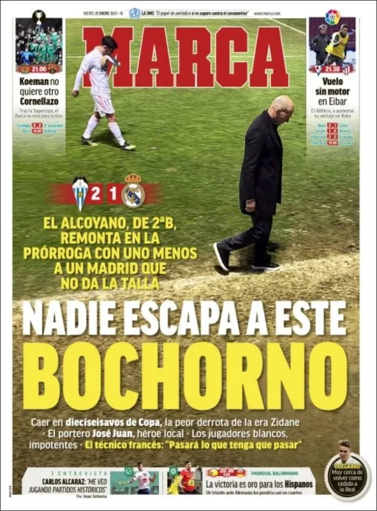 Real Madrid cayó inesperadamente este miércoles en dieciseisavos de final de la Copa del Rey al perder 2-1 contra el modesto Alcoyano, de la 2ª división B, equivalente a la tercera categoría del fútbol español.