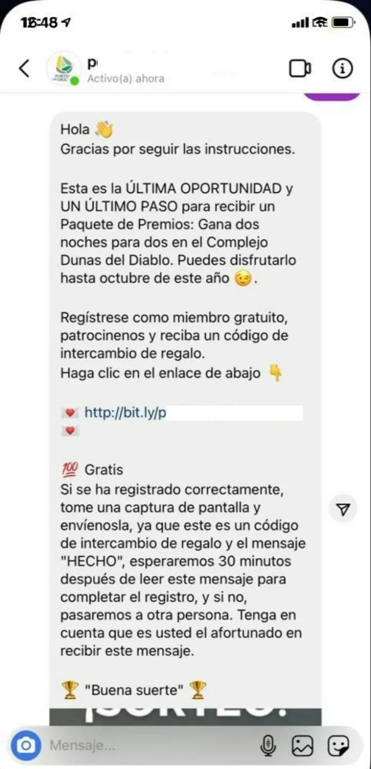 El Observador Los ciberdelincuentes agregan a los usuarios que participan en el sorteo y, tras ser aceptados, les mandan este mensaje. Algunos caen en la trampa.