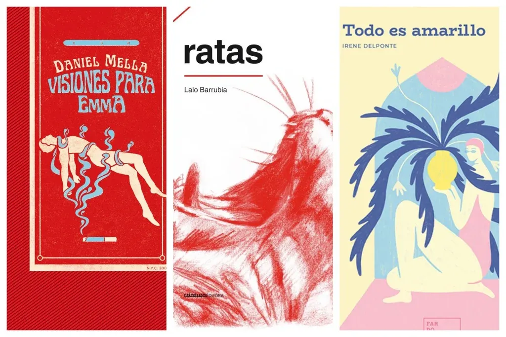 Las portadas de Visiones para Emma (Lucía Boiani), Ratas (Lucía Eluén) y Todo es amarillo (Gabriela Sánchez)