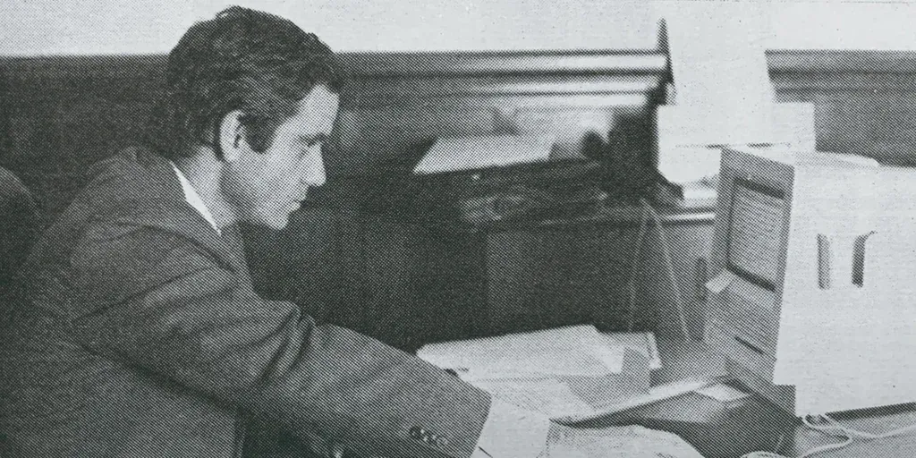 Ricardo Peirano trabajando en su computadora antes de la salida del diario
