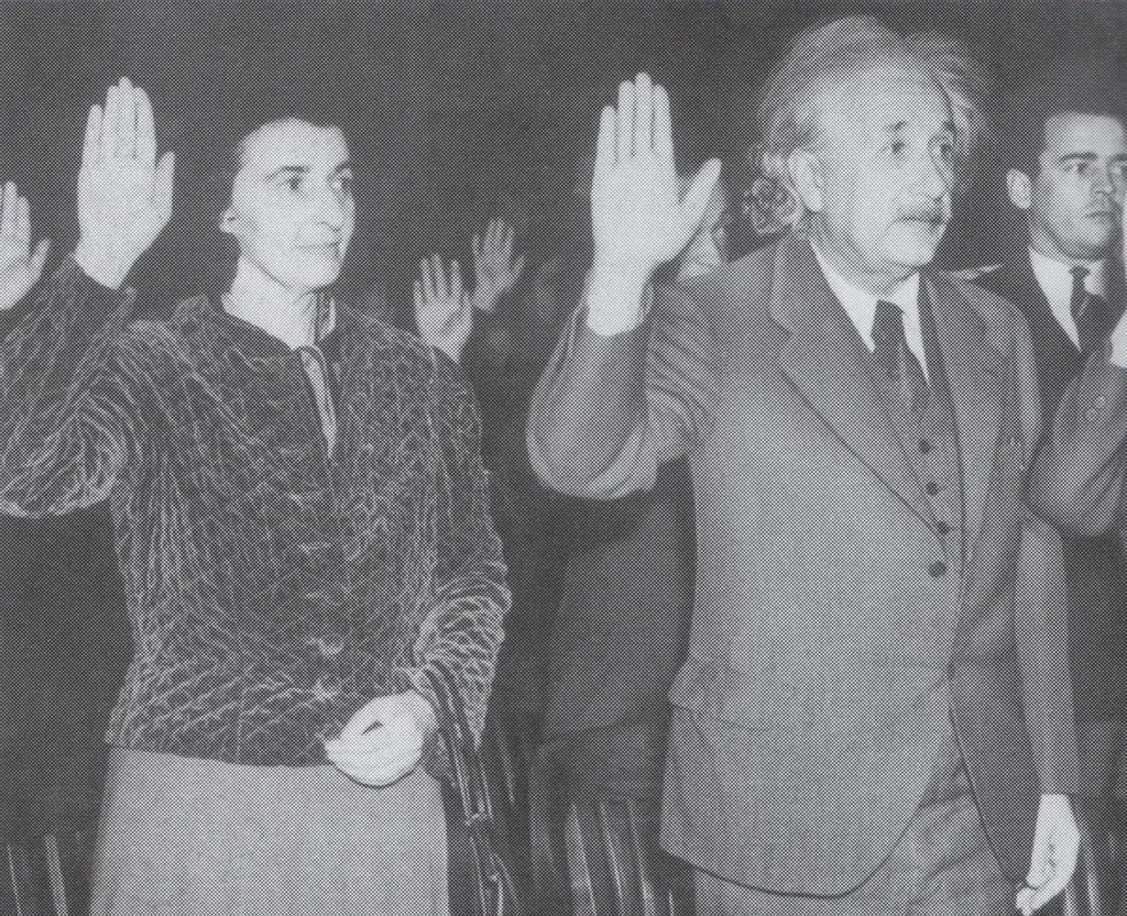 Albert Einstein y su hijastra Margot juran como ciudadanos de Estados Unidos en octubre de 1940