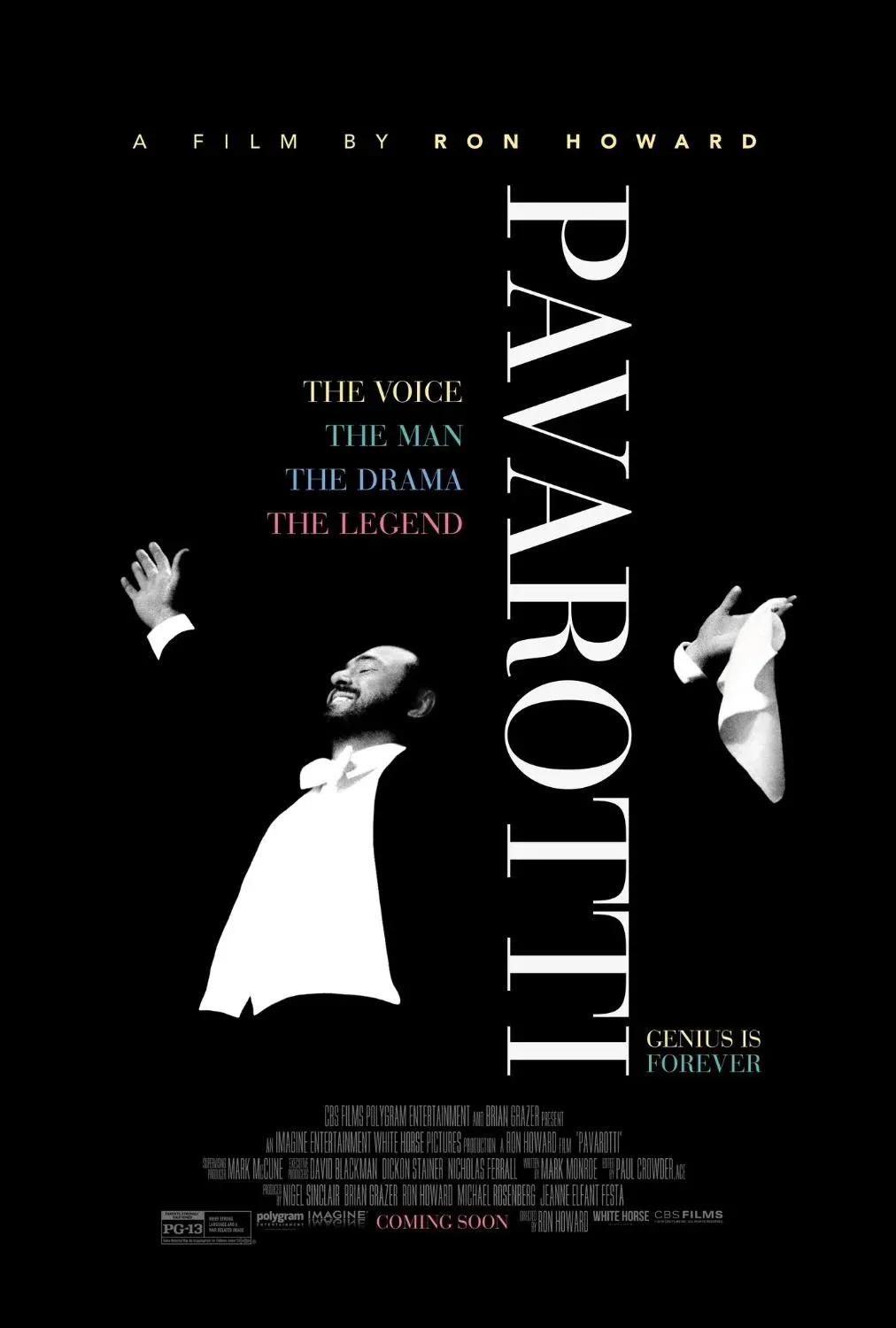 Afiche del documental Pavarotti, sobre la vida del tenor italiano