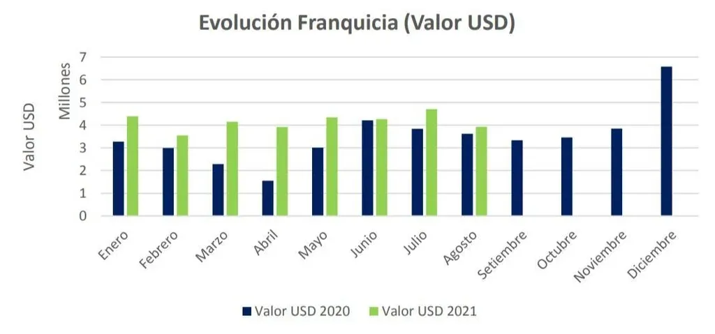 En cuanto al valor total de las compras, se registró un crecimiento de 8,5% en la comparación interanual. En agosto de 2020 se habían observado compras por US$ 3,6 millones