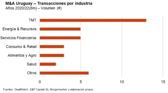 En línea con lo que ocurre en el resto de la región, los sectores más activos fueron TMT (tecnología, medios y telecomunicaciones), energía y recursos y servicios financieros (agentes del sistema financiero). En el sector de TMT se destacó principalmente IT services, según PwC.