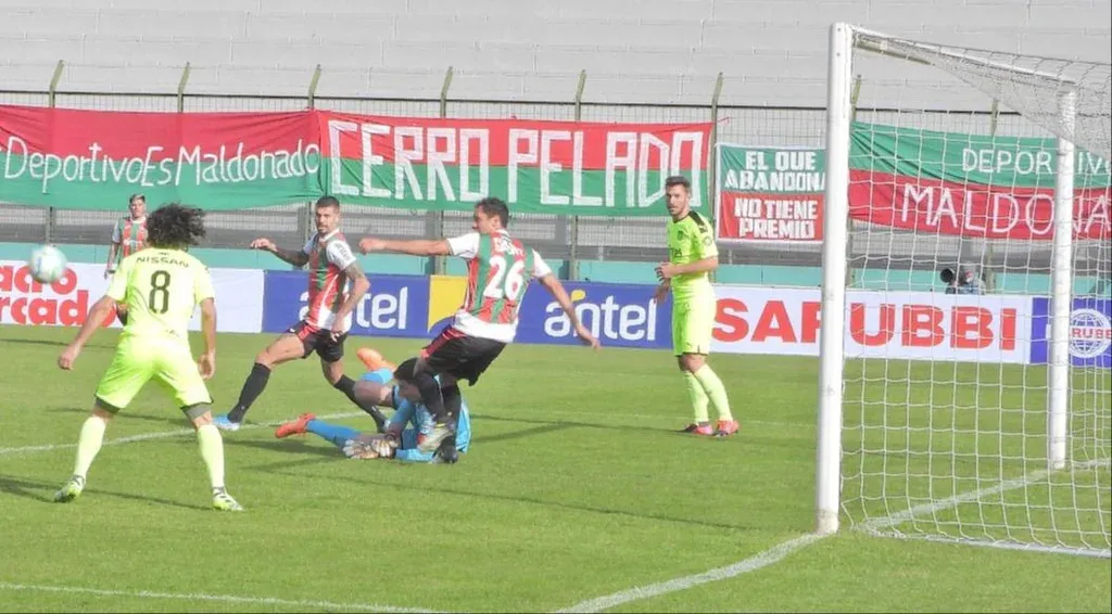 Deportivo Maldonado tuvo una llegada muy importante a los 40 minutos a través de Matías Tellechea y el equipo de Forlán se salvó debido a un gran cierre