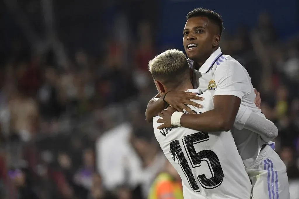 Valverde festeja con Rodrygo un gol que invalidó el VAR
