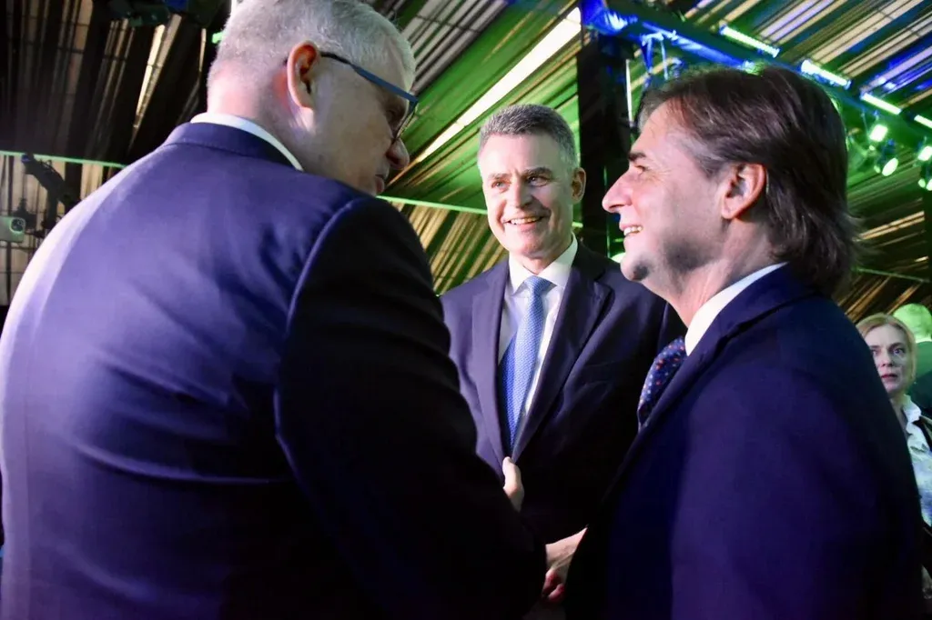 La inauguración reunió a centenares de empresarios, buena parte del gabinete de Lacalle Pou y también a varios jerarcas de la administración de Tabaré Vázquez que negociaron el proyecto.