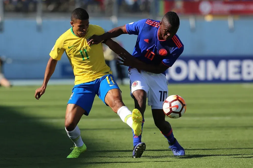 En los primeros 25 minutos, Colombia manejó más tiempo el balón. Pero sus intentos de conectar con el habilidoso Yeison Tolosa fueron frustrados por una férrea defensa de los brasileños, que desde el primer minuto puso al 10 de Deportivo Cali en la mira.