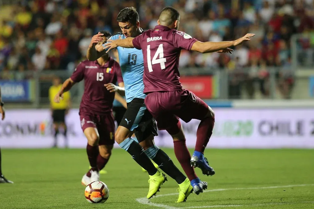 El número 10 venezolano, Samuel Sosa, inquietó permanentemente a la zaga de Uruguay arrancando por derecha con enganches al medio y un par de peligrosos remates de afuera del área.