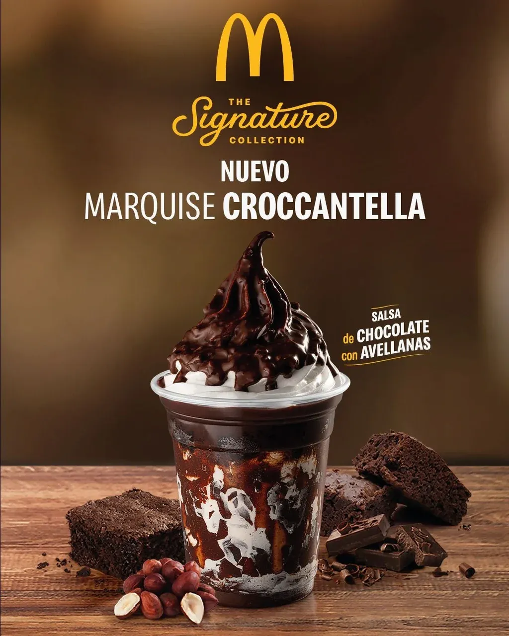La línea de postres de Signature Collection by McDonald’s también se renovó e incorporó el Marquise Croccantella para aquellos que buscan productos especiales. Este postre combina la exclusiva salsa crocante de chocolate con avellanas –la Croccantella– el clásico helado de vainilla de McDonald’s, salsa de chocolate caliente y un pastel húmedo de chocolate Marquise. Todos estos ingredientes generan un efecto crocante, con combinación de temperaturas, texturas y sabores inesperados.