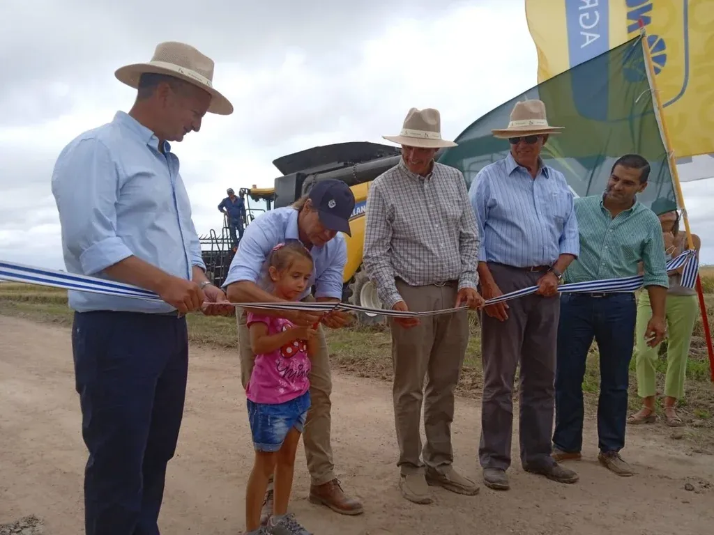La anécdota continuó cuando la pequeña cortó la cinta y Lacalle Pou le dijo: "Ya podés ser presidente", y tras repartir un pedazo de la cinta entre el productor, su familia e integrantes de la ACA, se dio paso a la esperada primera cosecha.