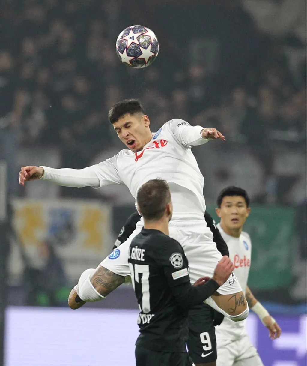 Napoli, líder y equipo sensación en el fútbol italiano, derrotó 2-0 a Eintracht Frankfurt en la ida de los octavos de final de la Liga de Campeones; Mathías Olivera fue titular