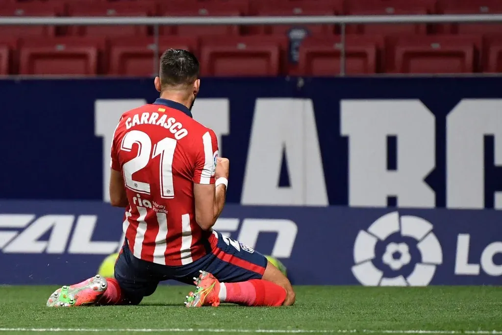 Tras perder un mano a mano con el meta Álex Remiro, Llorente logró meter un balón al área, donde Yannick Carrasco apareció para meter la punta de pie y abrir el marcador.