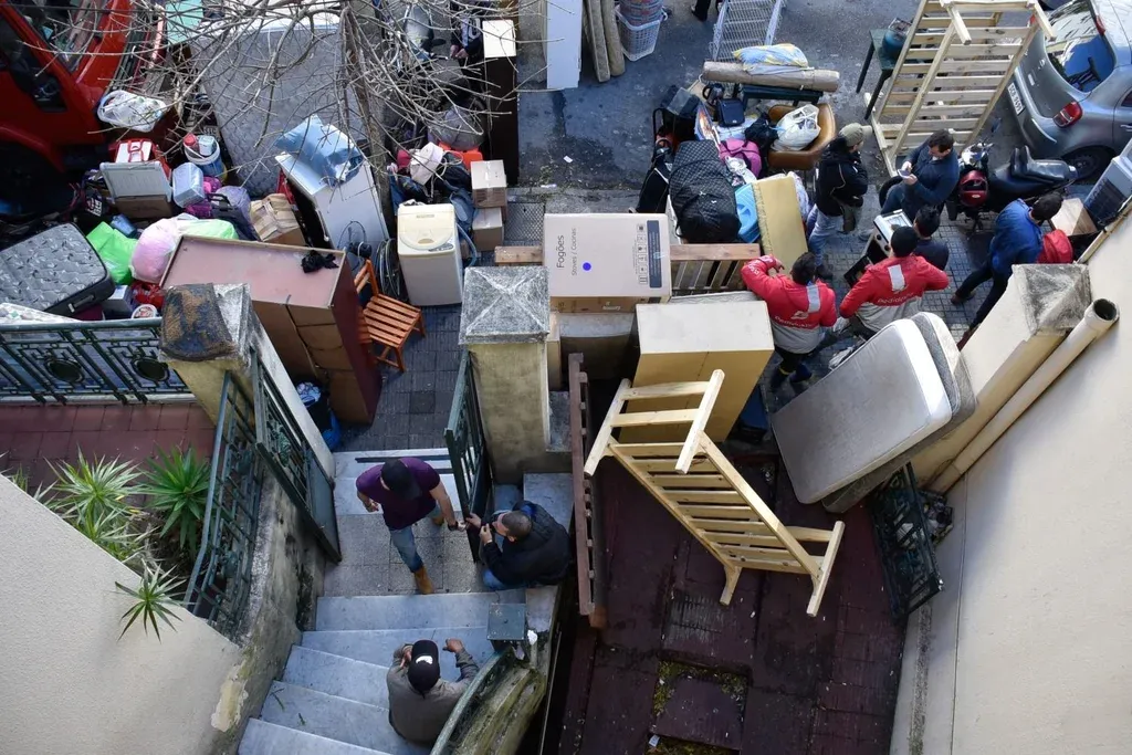 Esto que está viendo es la espera, en la calle, de más de 30 inmigrantes isleños y venezolanos que vivían hasta esta mañana en una casona ubicada en la calle Gestido –Pocitos–, y que ahora entran y salen con mesas, colchones, camas, valijas, cobayos, cuadros, bolsas con ropa. Cumplen, así, con una orden de desalojo que afectó a toda la comunidad, y que nada tiene que ver con el conflicto que motivó la intervención judicial.
