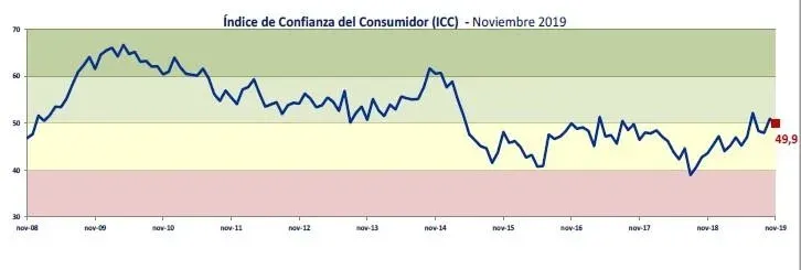 La confianza de los consumidores se retrajo un punto en noviembre y se ubicó en el nivel de neutralidad (49,9 puntos), de acuerdo con la medición realizada en los días posteriores al balotaje del 24 de noviembre.