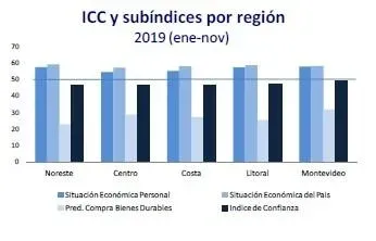 El aumento de la confianza en la zona noreste estuvo sustentado en una mejor evaluación de la situación económica país . De hecho, este subíndice mostró una suba considerable respecto a 2018 (de 12,5 puntos) y alcanzó en la referida zona el máximo guarismo entre las regiones analizadas (59,1 puntos).