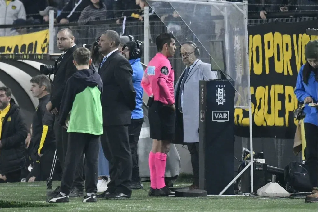 Leonardo Carreño Javier Feres chequea el VAR y anula el penal que había cobrado para Peñarol