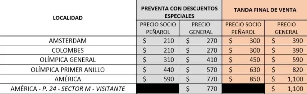 La tanda final de venta iniciará el 15 de agosto a la hora 12 de Uruguay y estará habilitada hasta una hora después de iniciado el encuentro.