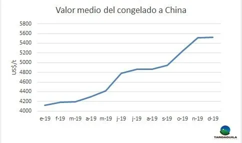 Precio medio del congelado a China