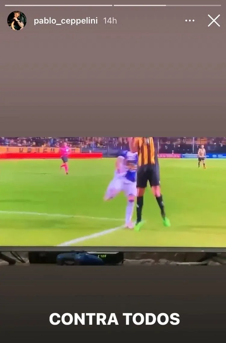 El futbolista escribió "contra todos" en sus historias de Instagram y publicó el video de la incidencia que lo tuvo como protagonista.