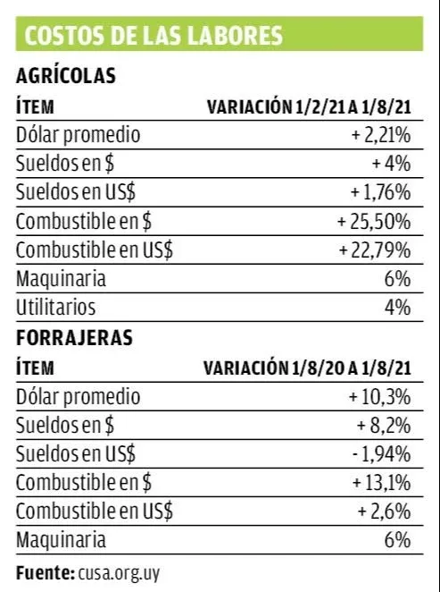 Para llegar a los nuevos precios –ver el detalle en cusa.org.uy– se tuvo en cuenta cómo varió el costo de diversos ítems: valor del dólar, suba de salarios, aumento en el combustible y en el valor de la maquinaria.